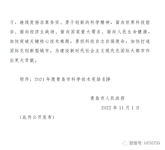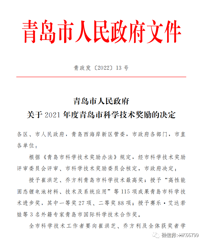 青島市科學技術進步一等獎