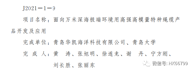 12月8日上午,青島市科技創新大會在市級機關會議中心召開,對獲得2021年度市科學技術獎的項目和人員進行表彰獎勵。青島華凱海洋科技有限公司“面向萬米深海極端環境用高強高模量特種繩纜產品開發及應用”項目榮獲青島市科學技術進步一等獎。